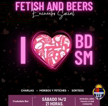 Fetish & Beers es una propuesta LGBTIQ+ de encuentro social, ameno, para conocernos entre fetichistas, amantes del cuero, del latex, botas, uniformes, policías, militares, deportistas, amantes del BDSM, y todos los que gustamos de prácticas y un erotismo que escapa a lo "tradicional".
